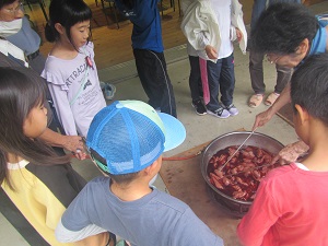 ぺ ットボトルでワナを作って魚をとったり、川の中に入って、たも網でヤゴやサワガニなども採集しました。