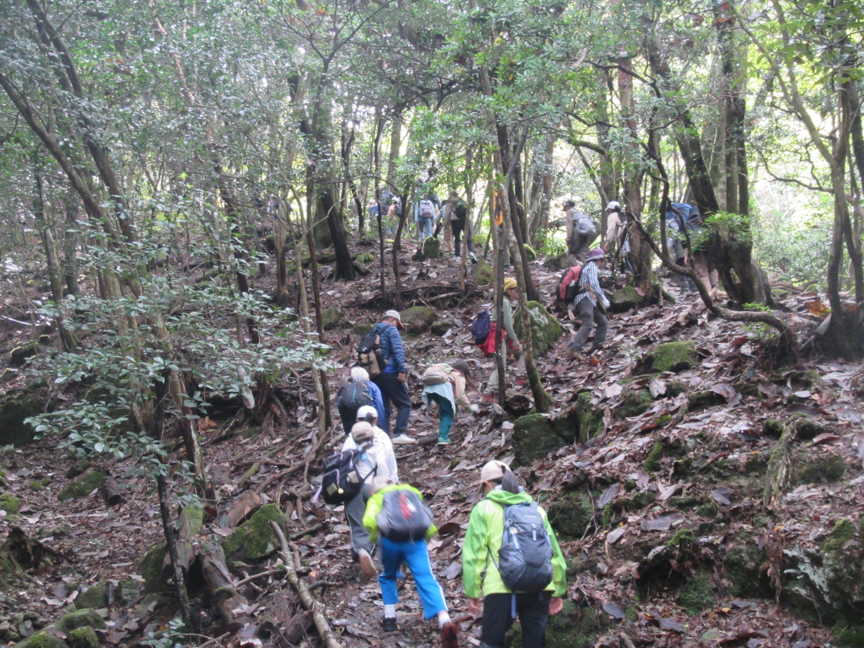 秋晴れの中、深山山頂に2時間かけて登りました。保護者の方々も一緒に登りました。