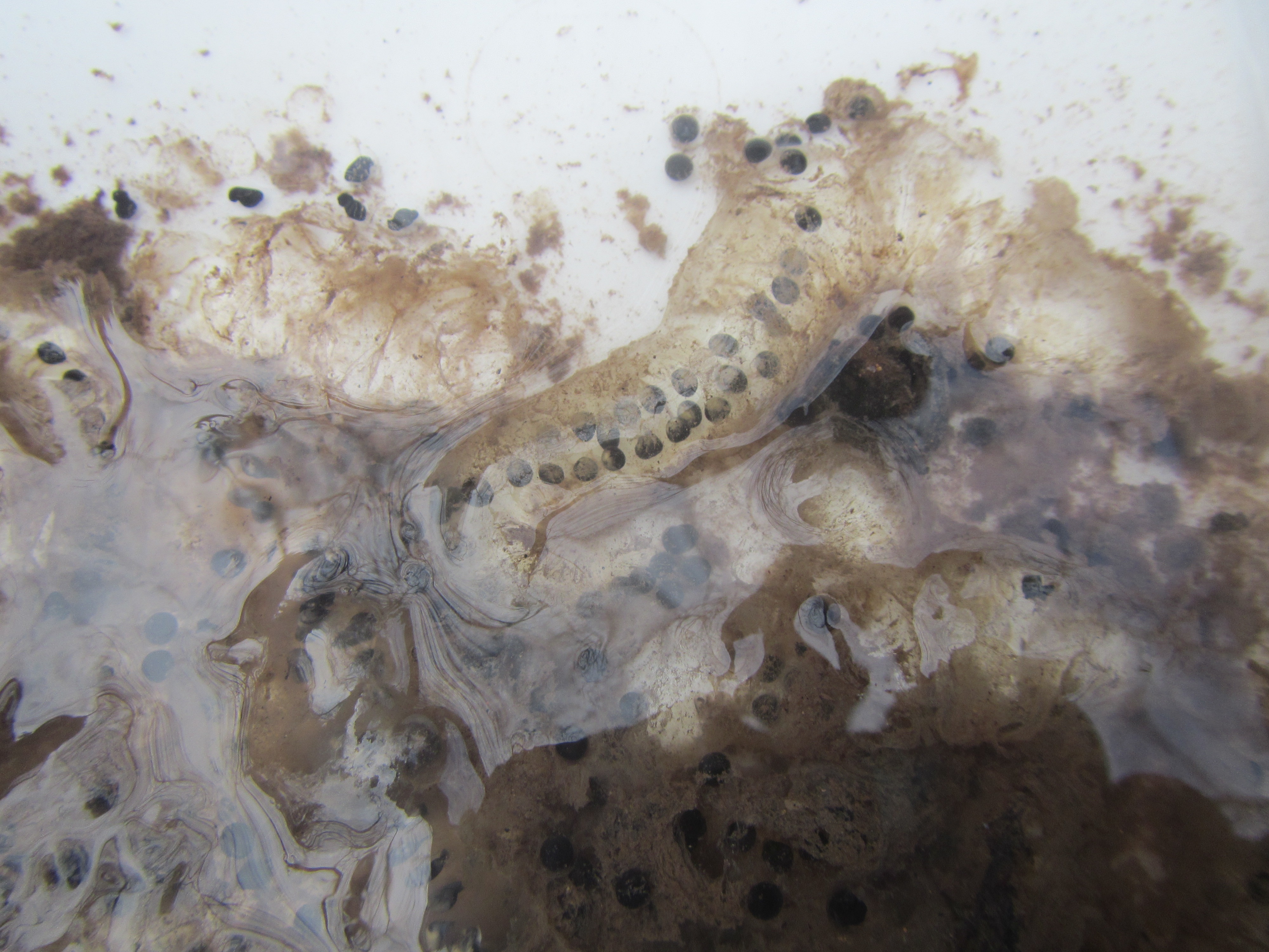 まだ寒い日が続いていますが、生きものはもう動き出しています。写真はヒキガエルの卵です。